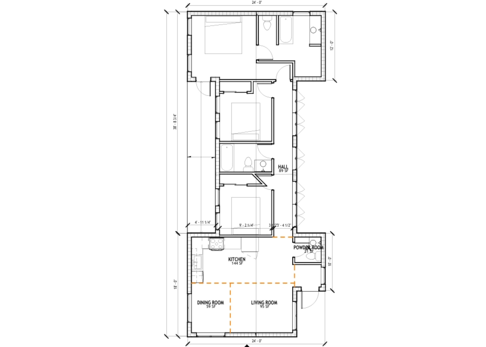1,200 square feet, 3 bedroom, 2 bathrooms